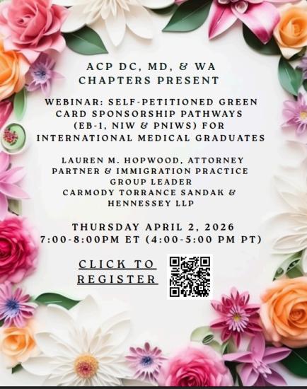 Please join the Maryland, DC, and Washington Chapters for an IMG Workshop: Self Promotional Green Card Sponsorship Pathways (EB-1, NIW & PNIWs) on Thursday, April 2 at 7:00 PM via Zoom.