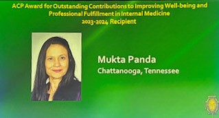 Dr.Mukta Panda, MD, MACP Outstand Contributions to Improving Well-being and Professional Fulfillment in Internal Medicine Award.